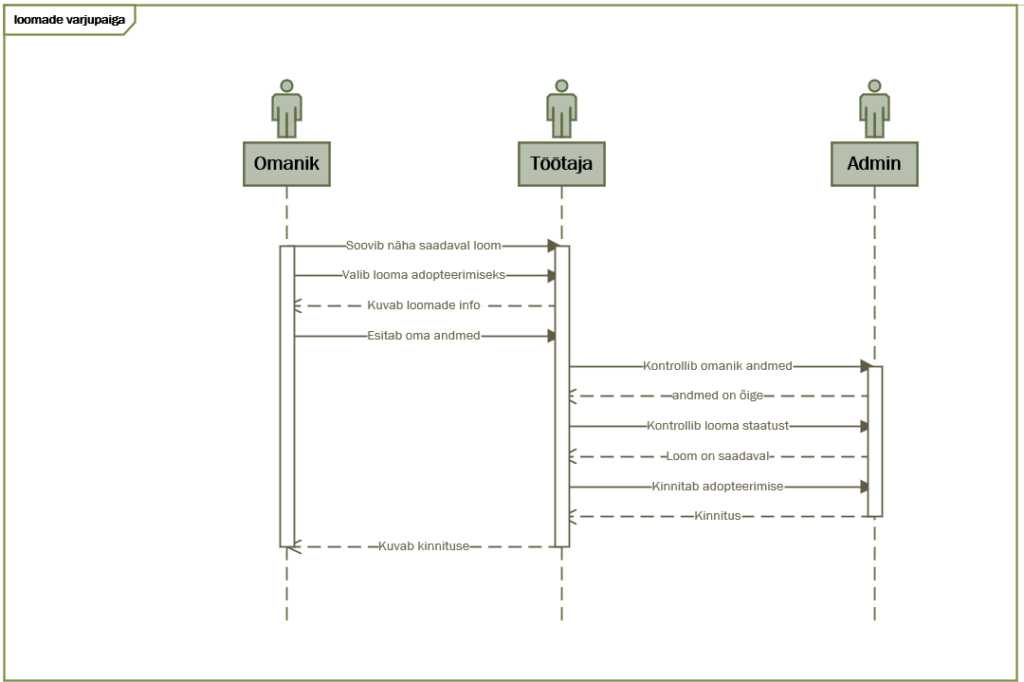 - Katkendjoonega nool — vastus või tagasiside teiselt osalejalt.