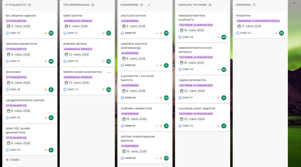 Visuaalne töölaud, kus ülesanded on jaotatud veergudesse vastavalt nende staatusele. Kasutatakse töö jälgimiseks Scrum või Kanban metoodika järgi.