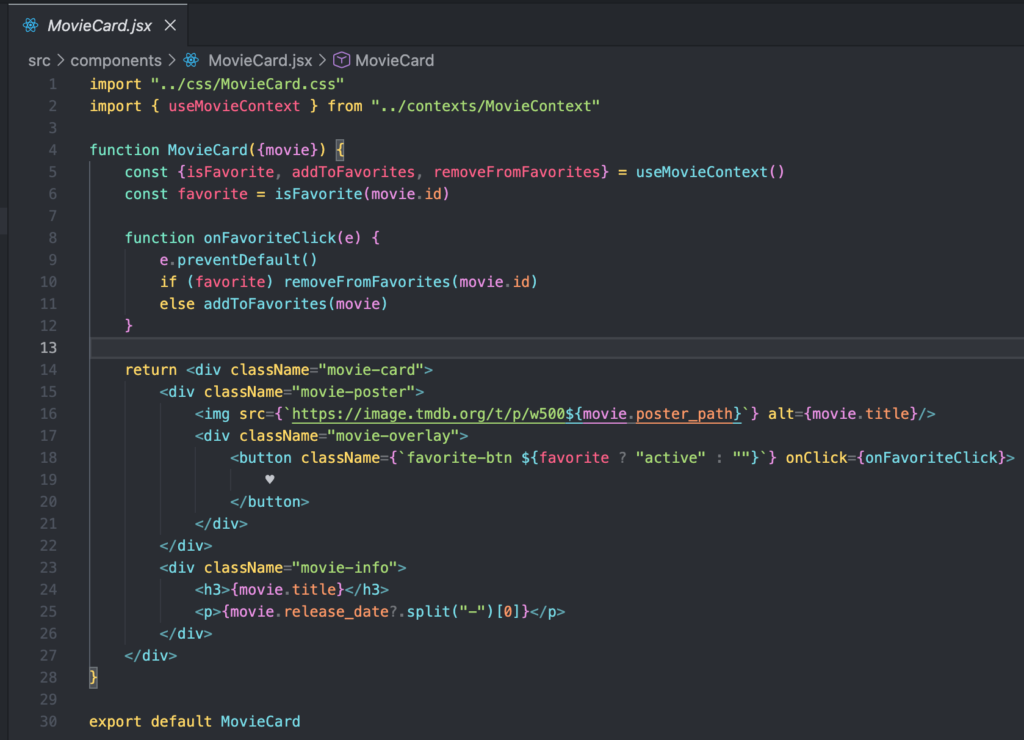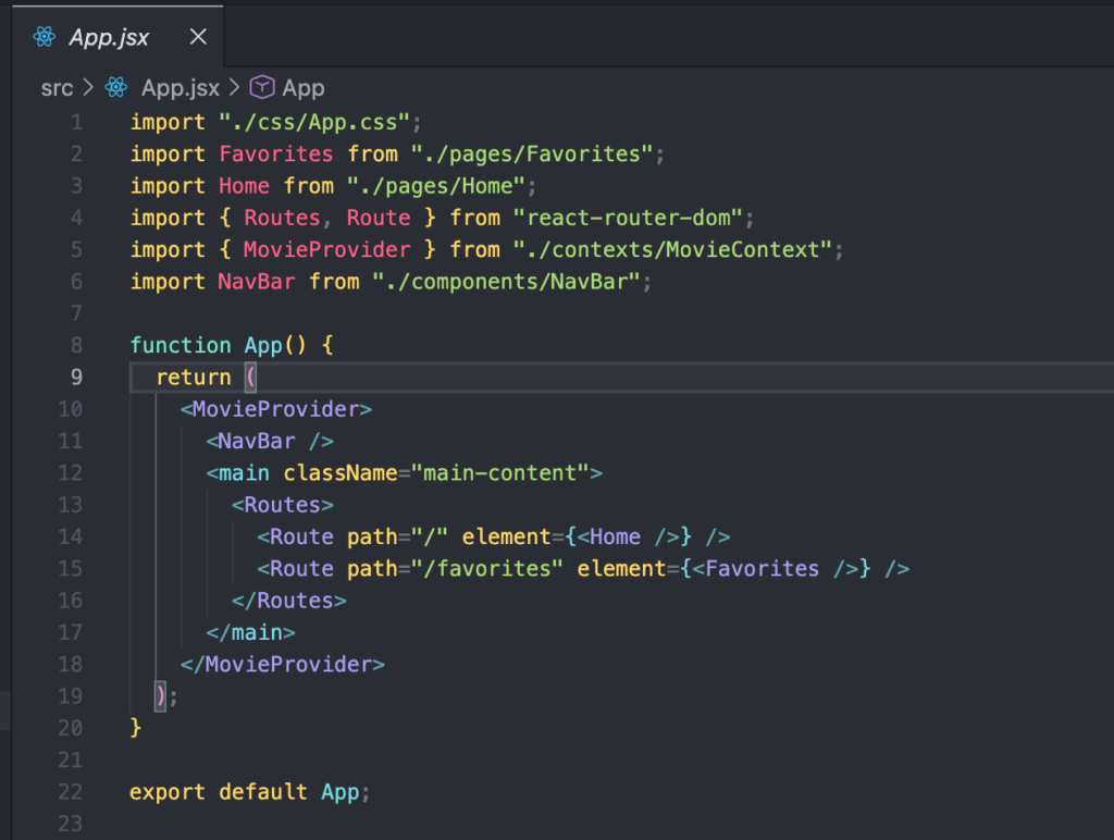 - Wraps the whole app with MovieProvider (global state for favorite movies)