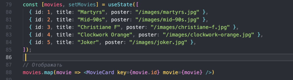 filteredMovies.map(movie => <MovieCard key={movie.id} movie={movie} />)