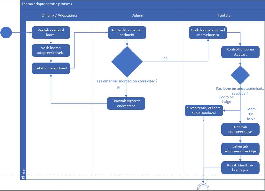 - Ristkülik / ümardatud ristkülik — tegevus või samm protsessis. Näitab, mida tehakse.